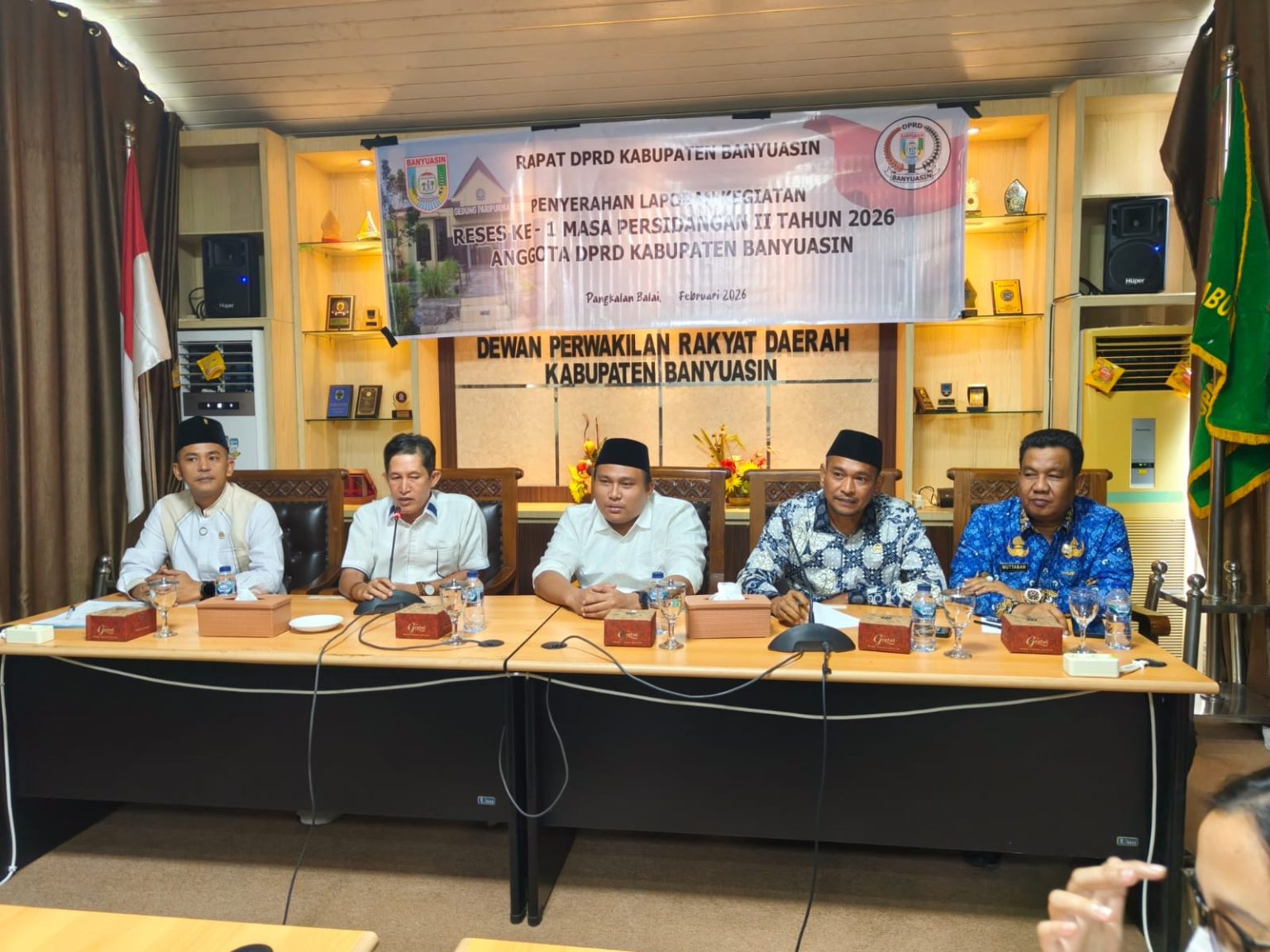 Banyuasin,- Dewan Perwakilan Rakyat Daerah (DPRD) Kabupaten Banyuasin secara resmi menyampaikan laporan hasil reses Ke- 1 Masa Persidangan II Tahun 2026, di ruang rapat DPRD Kabupaten Banyuasin, Rabu (18/2).